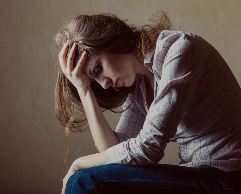 девушка держится за голову